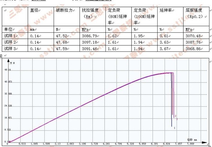 鋼(gāng)絲纏繞拉伸試驗數據及特征曲線: