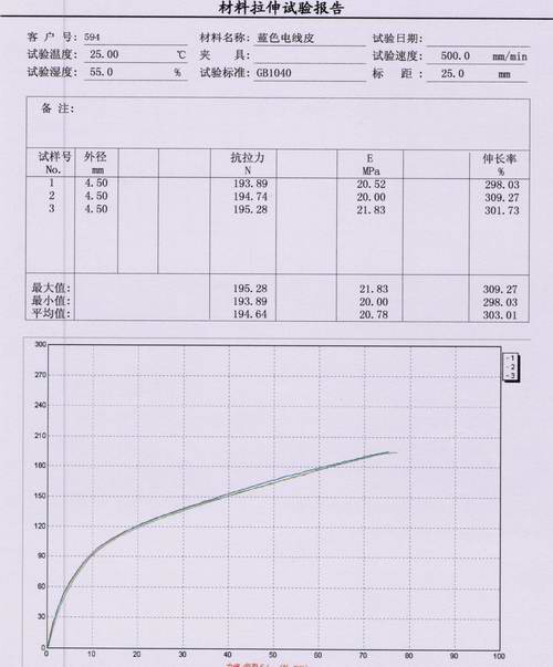 電線電纜的絕緣外皮(pí)報告內容(róng):①電線外徑(jìng)   ②抗拉力   ③彈性模量   ④伸長率