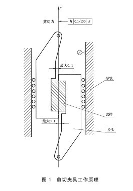 剪切夾具上下兩部分,剪切力通過夾具與試樣兩(liǎng)者的中線(xiàn),並於導軌平行(háng),誤(wù)差不(bú)能(néng)超過規定範圍。