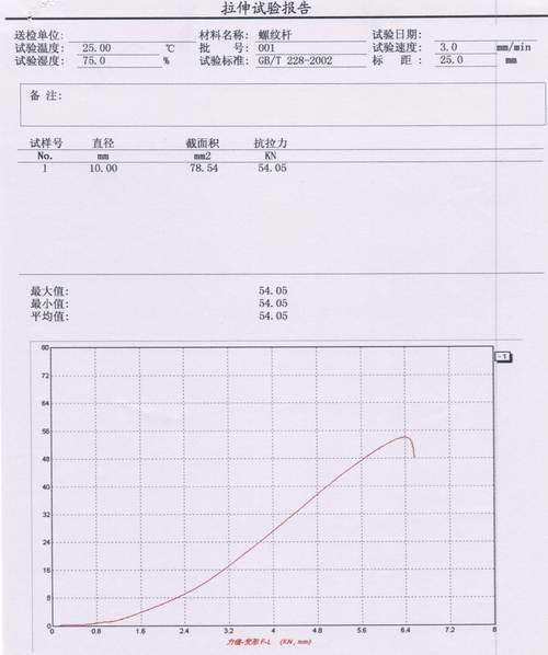 螺紋(wén)杆(gǎn)拉伸試驗報告(gào)內容: