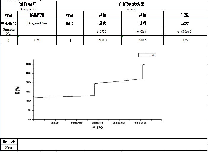 北京科技大學(xué)高溫合金蠕變試驗機測試報告